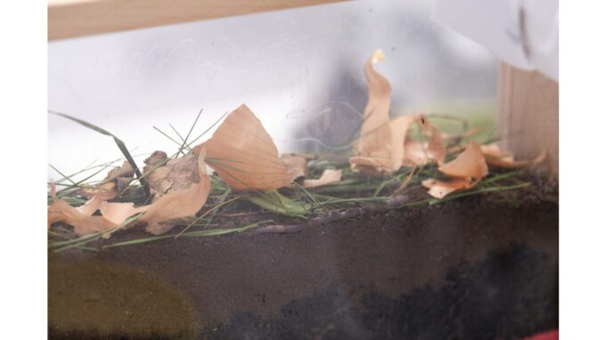- Setzen Sie die Regenwürmer ein und schließen Sie den Kasten mit den enthaltenen Verdunklungsplatten.