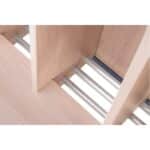 Die vorgesetzte Sitzfläche von 30 cm besteht aus einer kratzbeständigen 25 mm Holzdekorplatte und ist bei jeder Garderobenreihe am Anfang und am Ende 5 cm länger als die Gesamtbreite der Garderobenkorpusse.
