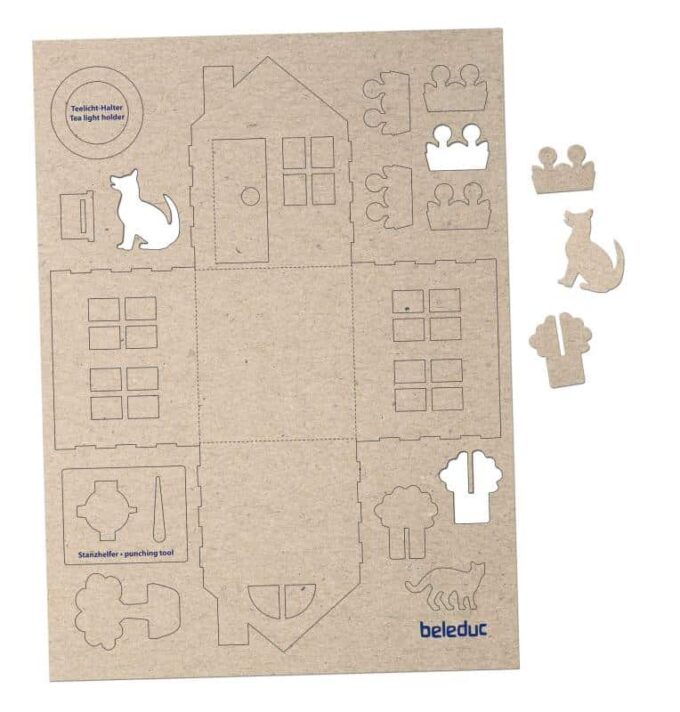 Die einzelnen Bastelbögen wurden aus stabiler dreilagiger Vollpappe gefertigt und bestehen zu 100 % aus Recyclingpapier. So leisten die Kinder beim Basteln auch ihren Teil zum Umweltschutz. Außerdem hilft das Projekt dabei, die Kunstfertigkeit und die motorischen Fähigkeiten der Kleinen zu fördern, während sie in Gruppen kreative Workshops für gemeinsames Basteln und Spaß veranstalten.