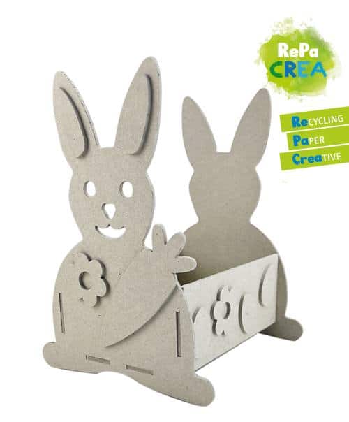 Der RePaCrea „Osterkorb“ wird aus stabiler dreilagiger Vollpappe hergestellt und besteht zu 100 % aus Recyclingpapier. Damit leisten die Kinder nicht nur einen Beitrag zur Umwelt, sondern dürfen auch mit gutem Gewissen kreativ tätig sein.