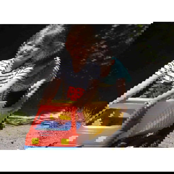 Die intelligente Konstruktion erlaubt Kinderhänden ab 2 Jahren, Lasten bis zu 50 kg problemlos zu befördern und durch einfaches Schrägstellen der Ladefläche präzise abzukippern. Die angebrachte Öse sorgt für extra Spielspaß, indem sie das Fahrzeug in einen Zugwagen verwandelt, den die kleinen Fahrer hinter sich herziehen können.