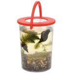 Große Tierchen große Lupe … Fast schon ein Eimerchen mit Henkel und Lupendeckel ist diese Riesenbecherlupe. Toll zum Beobachten von Pflanzen und Tieren, die für die normale Lupendose zu groß sind. Durch das Karomuster am Dosenboden mit 5 mm Raster kann die Größe des Tierchens gemessen werden.