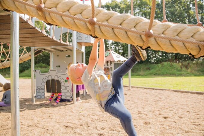 Arthurs sechs Türme sind mittels schwingenden und schrägen Hängebrücken miteinander verbunden. Um das Gleichgewicht zu halten, muss man sich gut an den Seilen festhalten. Zusätzlich dazu erfordern das Durchqueren des Netztunnels, das Erklettern des Netzes und der Kletterwand sowie das Hangeln an den Hängegriffen viel Geschick und Kreuzkoordination. Bewegungen in der Körperdiagonale stimulieren neurale Aktivitäten zwischen den beiden Hirnhälften, was für den kindlichen Lernprozess enorm wichtig ist.