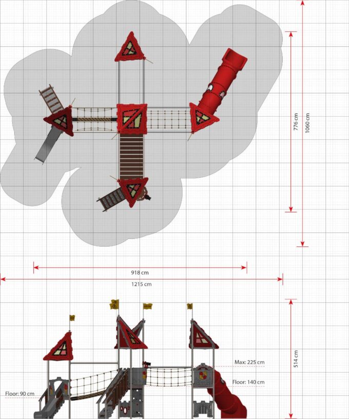 Muskeln und Kreuzkoordination werden beim Klettern auf die Probe gestellt, während beim Balancieren über die Hängebrücken und beim Rutschen auf der offenen Rutsche oder in der geschlossenen Röhrenrutsche der Gleichgewichtssinn gefordert ist. Das Spielen auf Rutschen bietet eine Menge Spaß und Aufregung, ist aber auch wichtig, um Entfernungen und Geschwindigkeiten einschätzen zu lernen. Und wenn die Sonnenstrahlen die roten und gelben transparenten Scheiben im Dach erfassen, entstehen auf dem Boden bunte Muster, die zum Spielen von „Der Boden ist Lava“ einladen.