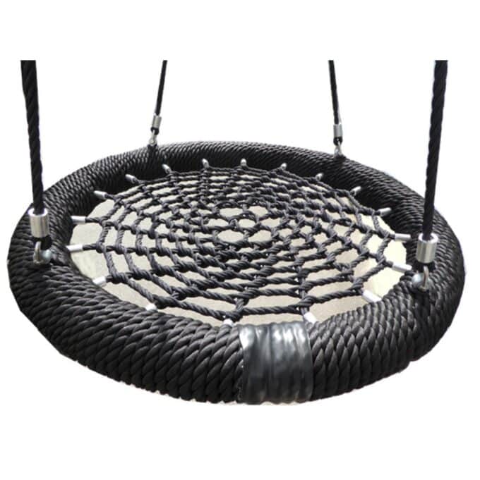 - Langlebigkeit durch hochwertige Materialien: Der solide Stahlring im Inneren sorgt für maximale Formstabilität, während das UV- und witterungsbeständige Seilmaterial eine lange Lebensdauer garantiert. Die Standardfarbe Schwarz ist zeitlos und unempfindlich, während weitere Farboptionen eine individuelle Anpassung an Ihr Spielplatzkonzept ermöglichen.