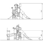 - Plattformhöhe der Rutsche: 90, 120 cm