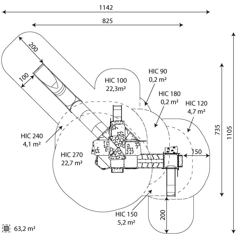 - Plattformhöhe der Röhrenrutsche: 240 cm