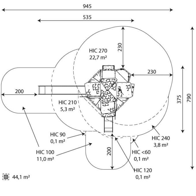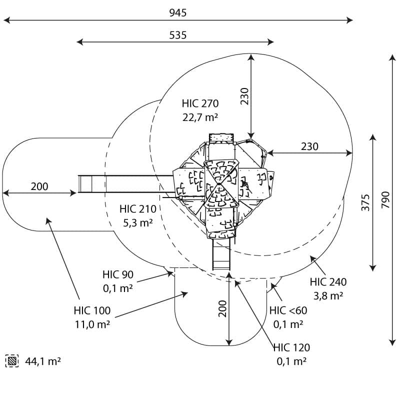 - Plattformhöhe der Rutsche: 90, 210 cm
