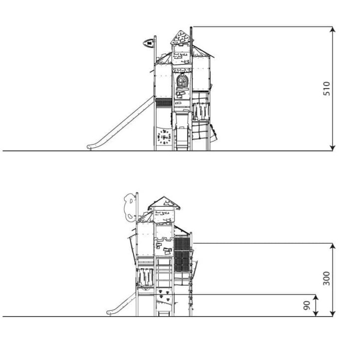 Technische Daten Ritter-Spielanlage mit 2 Rutschen und Kletterelementen CASTILLO 3027-1 von Vinci Play