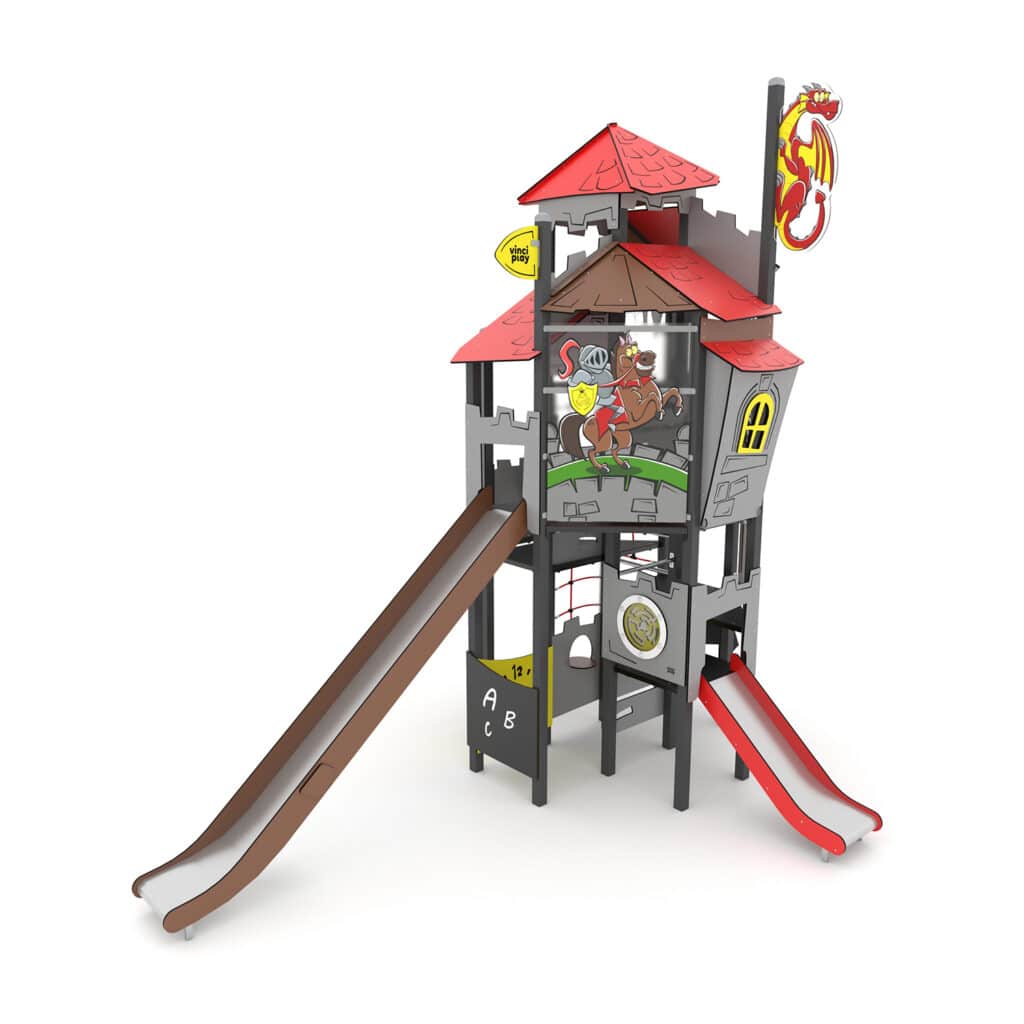 Ritter-Spielanlage mit 2 Rutschen und Kletterelementen CASTILLO 3027-1 von Vinci Play