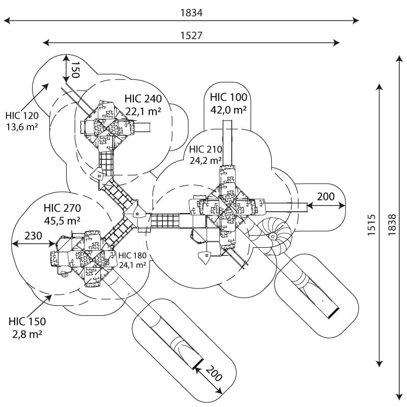 - Plattformhöhe der Rutsche: 90, 180, 210 cm