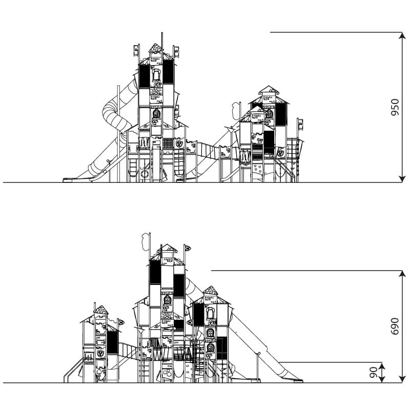 Die CASTILLO Serie besteht aus einer multifunktionalen Turmausrüstung mit beeindruckenden hohen Türmen aus hochwertigsten Materialien. Burgen, Wassergräben, Brücken, Seilelemente und Röhrenrutschen aus Edelstahl ermöglichen freudiges Spielen für Kinder jeden Alters. Speziell für kleine Ritter entwickelt.
