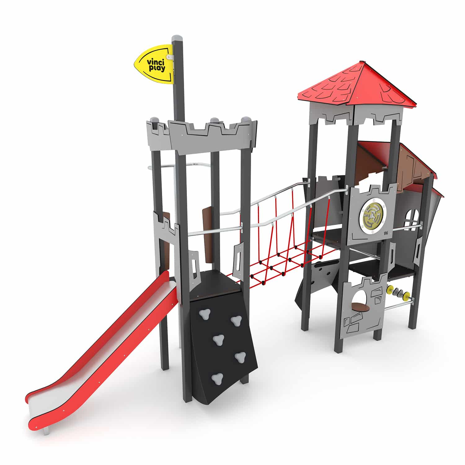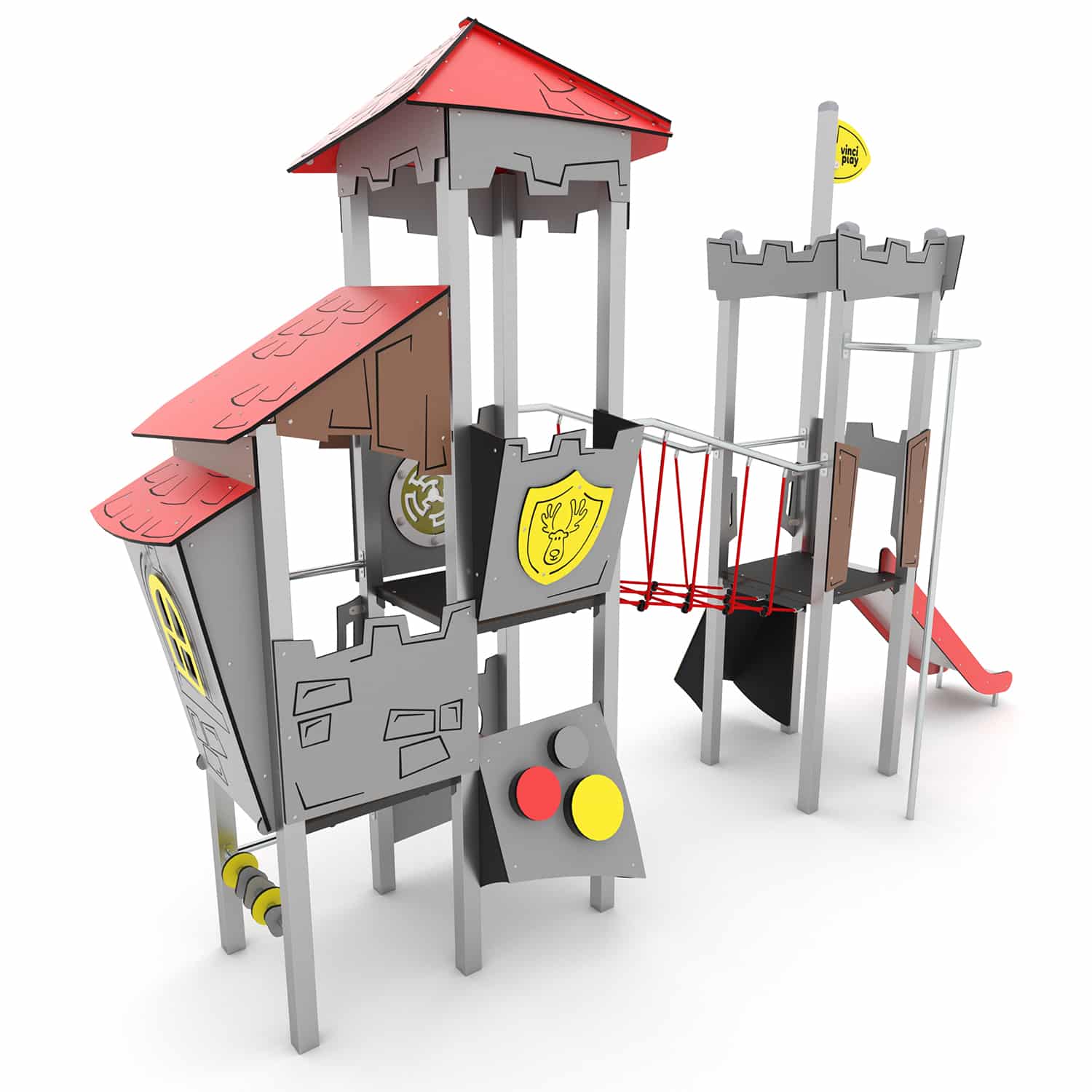 Ritter-Spielturmanlage mit Rutsche, Seilbrücke und Kletterelementen CASTILLO 3004-1 von Vinci Play