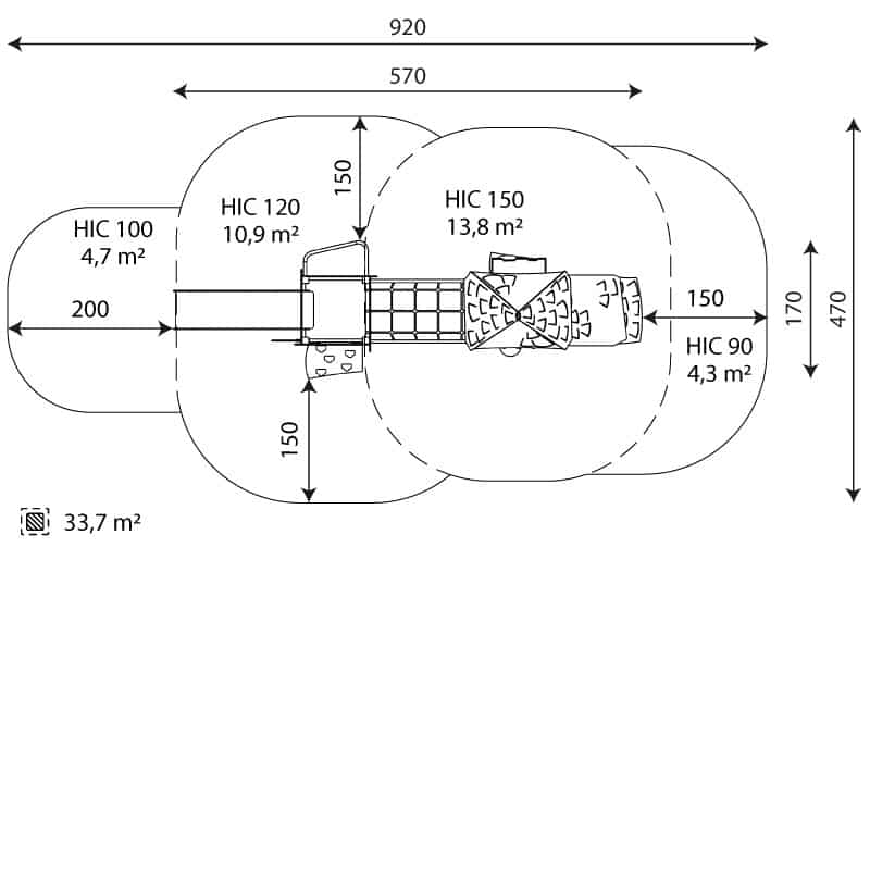 - Verankerung auf ebener Fläche, 80/70/60 cm tief; Rutsche sollte nicht nach Süden eingebaut werden;