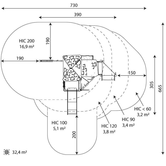 - Plattformen, Kletterwände und Stufen aus strapazierfähiger, rutschfester und wasserdichter HPL-Platte,