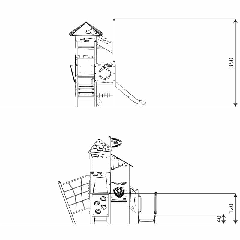 Technische Daten Ritterturm mit Rutsche, Podest und Kletternetz CASTILLO 3003-1 von Vinci Play