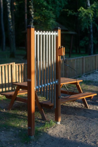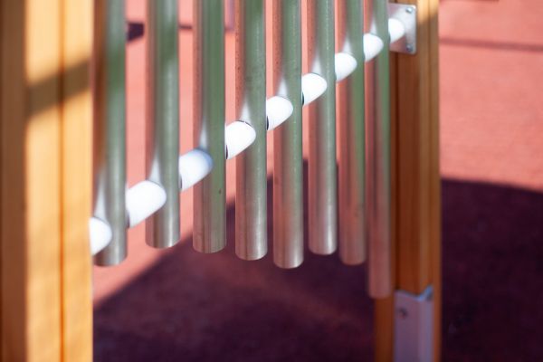 Gefertigt aus langlebigen Materialien wie witterungsbeständiger Lärche, Edelstahl und Kunststoff, sind die Röhrenglocken sowohl stabil als auch sicher und eignen sich ideal für den Einsatz im Freien. Ihre einfache und harmonische Ästhetik macht sie zu einem Blickfang, der jede Umgebung aufwertet – sei es ein Spielplatz, eine Kita oder ein Park.