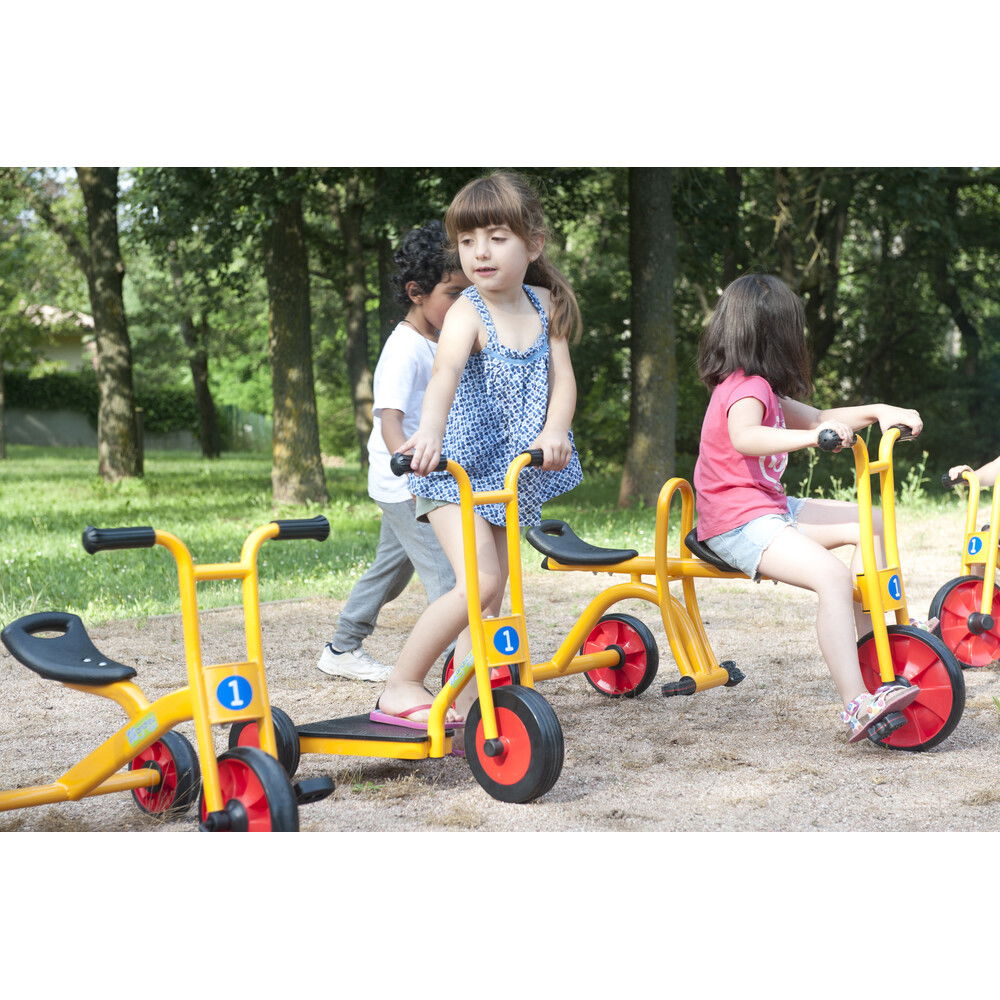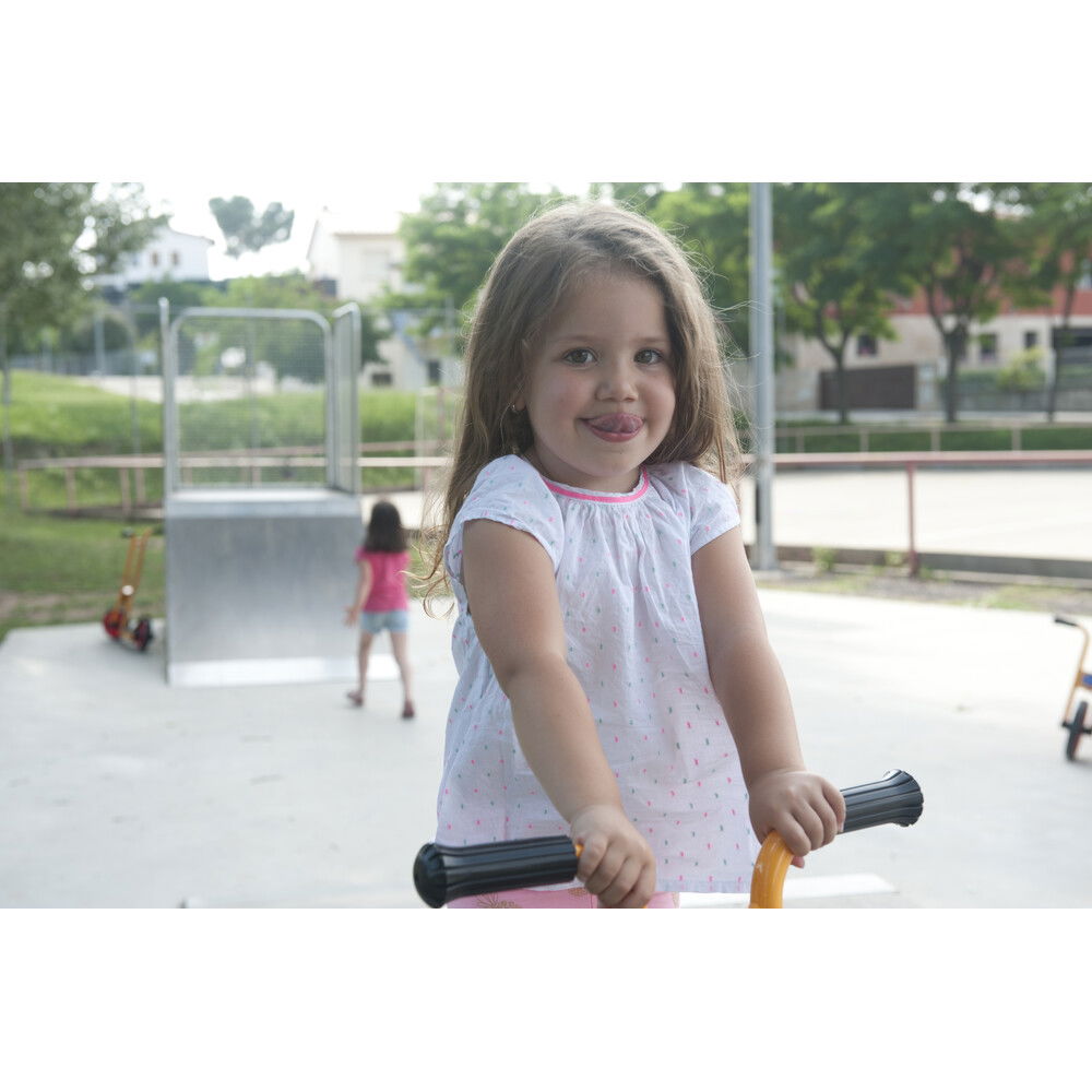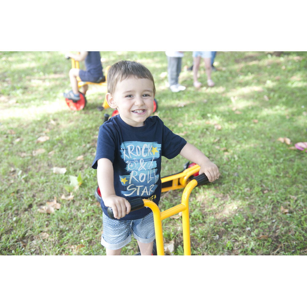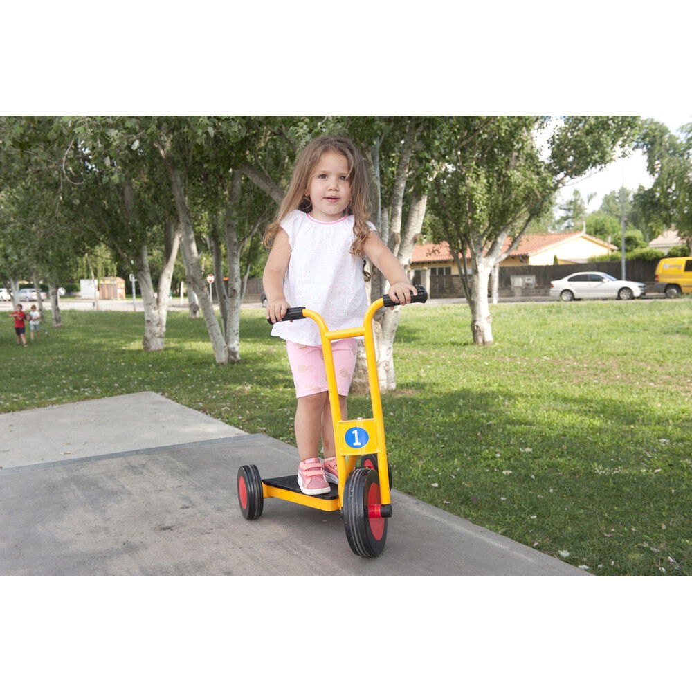 Anders als Modelle für ältere Kinder, setzt der „Funny“ auf maximale Standfestigkeit. Seine extra breiten Räder sorgen dafür, dass der Roller nicht so leicht kippt und vermitteln den kleinen Fahrern sofort ein Gefühl von Sicherheit. Gefertigt aus hochwertigen Materialien, die auch den rauen Alltag in Betreuungseinrichtungen problemlos überstehen, ist dieser Roller ein langlebiger Begleiter. Er kombiniert spielerische Leichtigkeit mit einer robusten Bauweise, die Eltern beruhigt und Kinder begeistert. Mit diesem Fahrzeug wird jede Fahrt zu einem fröhlichen Erlebnis, bei dem die Freude an der Bewegung im Mittelpunkt steht.