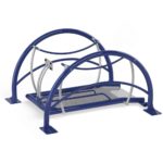Die Bodenfläche ist mit Aluminiumriffelblech ausgestattet, das sowohl rutschfest als auch robust ist. So werden das Wohlbefinden und die Sicherheit der Kinder beim Spielen gewährleistet. Alle Materialien und Komponenten entsprechen den strengen DIN EN 1176 Sicherheitsstandards und sind für den öffentlichen Bereich zertifiziert.