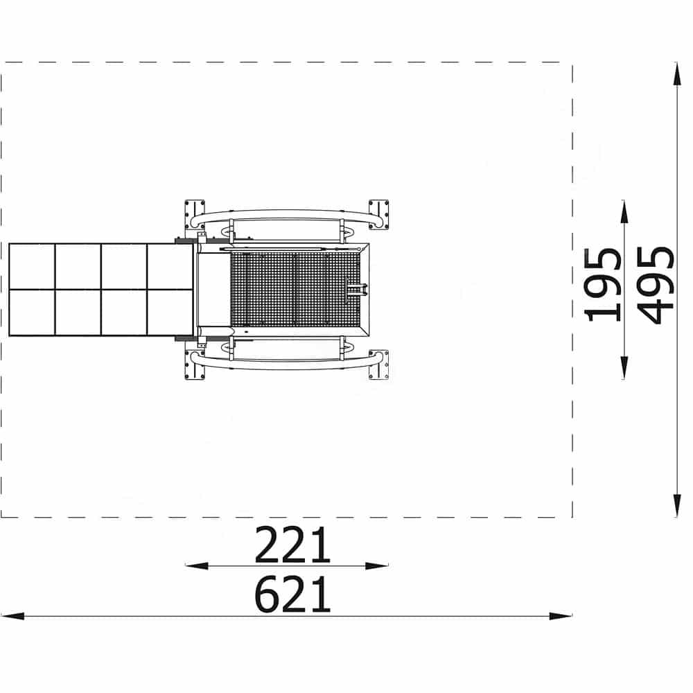 - Sicherheitsbereich: 495 x 621 cm (Fläche: 30,5 m²)