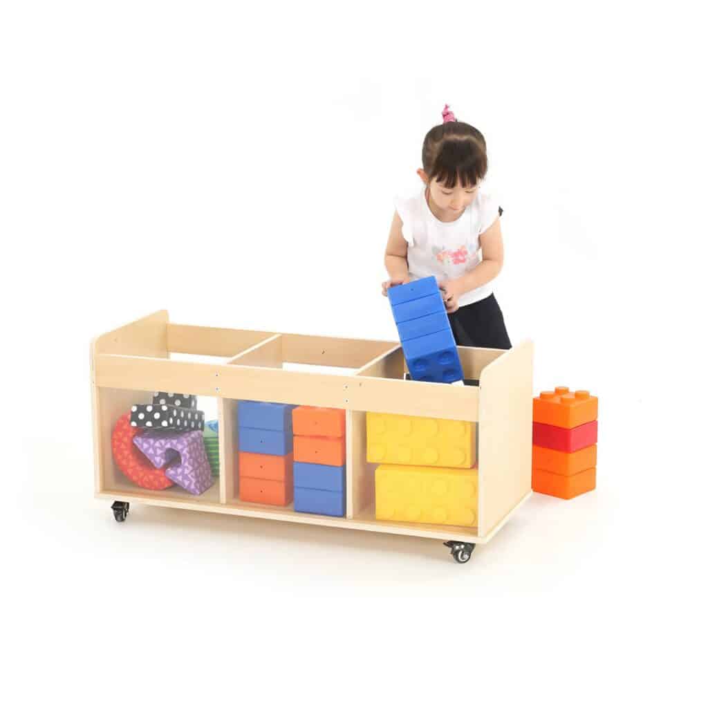 Entdecken Sie unseren vielseitigen Rollwagen mit 3 Fächern, die perfekte Lösung für Ihre Kindereinrichtung! Dieser praktische Rollwagen bietet reichlich Platz für große Bausteine, Handpuppen und anderes Spielzeug. Er bringt nicht nur Ordnung in das Spielzimmer, sondern ermöglicht auch eine einfache Mobilität, sodass die Kinder jederzeit und überall auf ihre Lieblingsspielzeuge zugreifen können.