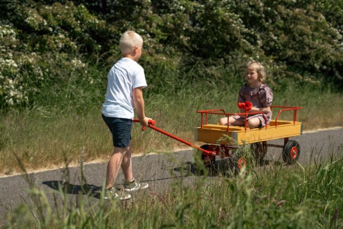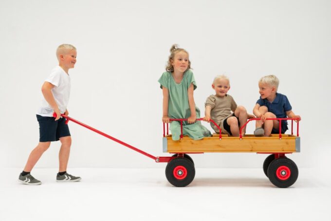 Der Wagen ist nicht nur ein praktisches Hilfsmittel zum Tragen von Kindern oder Dingen, sondern kann auch eine unterhaltsame Ergänzung zu jedem Outdoor-Spiel sein. Kinder lieben es, verschiedene Fortbewegungsmittel zu nutzen, und der Wagen bietet eine spannende und komfortable Möglichkeit. Mit hohen Seitenwänden und einer stabilen Struktur ist er auch eine sichere Wahl für Eltern, die ihre Kinder unterwegs betreuen möchten.