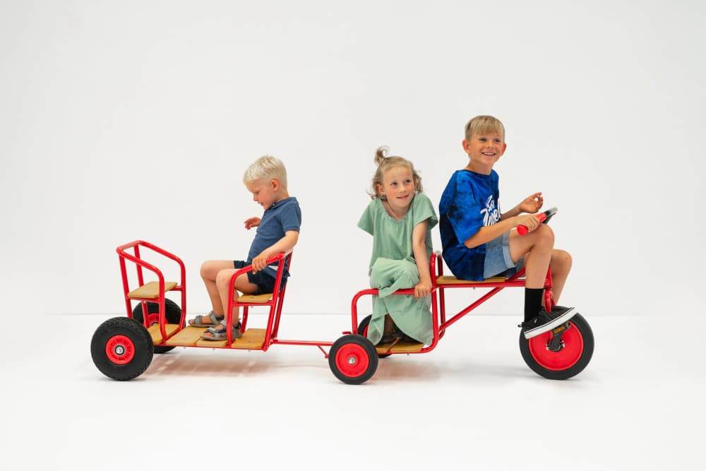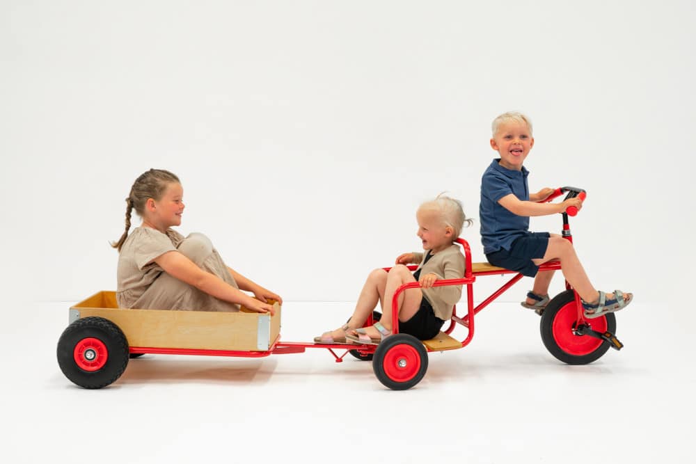 Mit einem Anhänger wird das Dreirad sofort zum Lastwagen, was den Kindern noch mehr Spaß macht.
