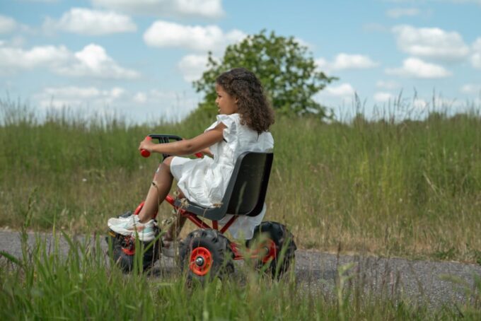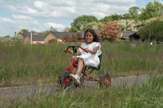 Mit einem Anhänger wird das Dreirad sofort zum Lastwagen, was den Kindern noch mehr Spaß macht.