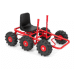 ROSE Zweiachsiger Go-Cart mit sechs Traktorreifen und robustem Kunststoffsitz. Er verfügt über eine Hinterradlenkung für zusätzliche Manövrierfähigkeit und wird über zwei Lenkstangen gelenkt. Der Antrieb erfolgt durch Ihre Körperkraft über Pedale an der Vorderachse.