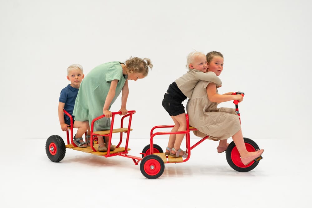 ROSE Anhängertaxi mit Ballonreifen und zwei Sitzplätzen. Passend und einfach anbaubar für alle ROSE Dreiräder.