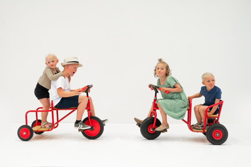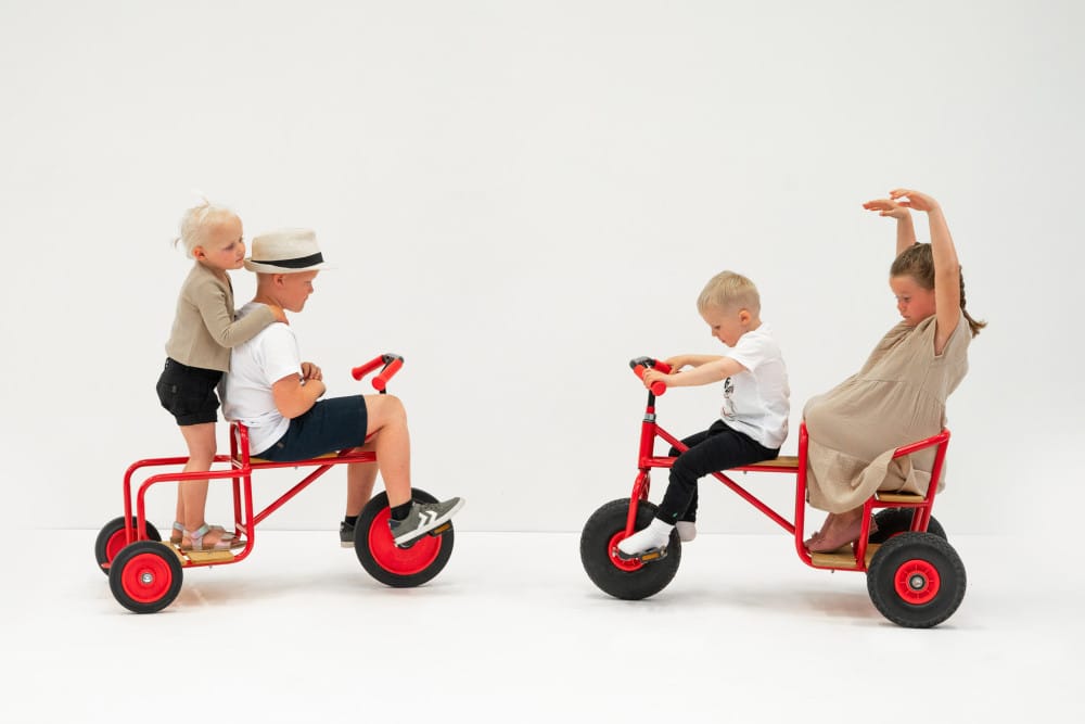 Mit einem Anhänger wird das Dreirad sofort zum Lastwagen, was den Kindern noch mehr Spaß macht.