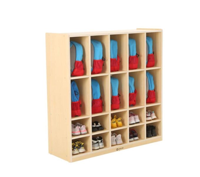Unser praktisches Rucksack- und Schuhregal bietet eine ideale Lösung für Kindergärten, um die persönlichen Gegenstände von bis zu 10 Kindern ordentlich und übersichtlich zu verstauen. Mit seinen robusten und kindgerechten Eigenschaften ist dieses Regal perfekt auf die Bedürfnisse der Kleinen zugeschnitten.