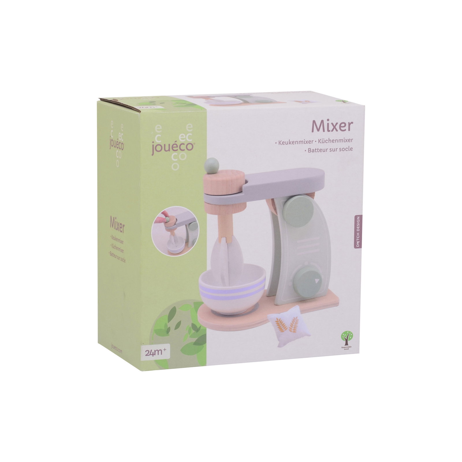 Bei der Herstellung dieses Spielzeugs steht höchste Qualität im Fokus. Die Küchenmaschine besteht aus robustem, hochwertigem Holz, das auch besonders intensiven Spielstunden im Alltag verlässlich standhält. Das ansprechende Design in sanften Pastellfarben fügt sich harmonisch in jede Einrichtung ein und verleiht der Spielküche einen modernen, freundlichen Charakter. Da Sicherheit an erster Stelle steht, ist das gesamte Set ausschließlich mit unbedenklichen Farben auf Wasserbasis lackiert. Das natürliche Material Holz bietet den kleinen Händen zudem einen wunderbaren taktilen Reiz und fühlt sich beim ausdauernden Spielen angenehm warm an.