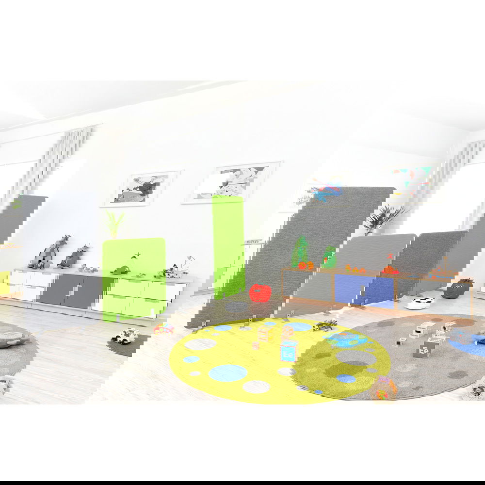 Die frische grüne Grundfarbe erinnert an eine saftige Wiese, während die bunten Punkte wie Farbtupfer wirken, die die Fantasie anregen. Kinder können von Punkt zu Punkt hüpfen, die Farben benennen oder die Punkte als Inseln in ihren Spielwelten nutzen. Das verspielte Design schafft eine positive und motivierende Atmosphäre. - Robust und strapazierfähig für unbeschwerten Spielspaß