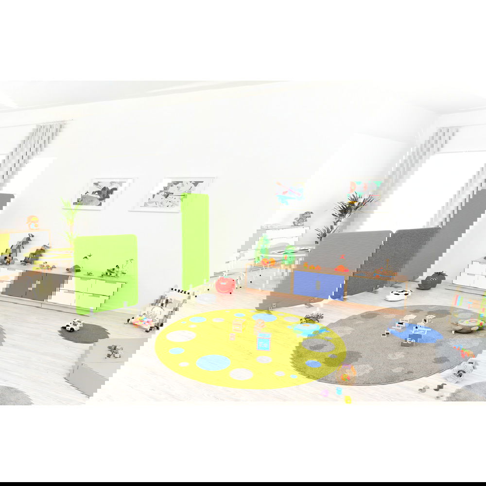 Dieser Teppich ist mehr als nur ein dekoratives Element. Er schafft eine definierte, gemütliche Zone im Raum – ideal für den Morgenkreis in der Kita, als Spielfläche im Kinderzimmer oder als farbenfroher Akzent in einem Wartebereich. Das Design regt zu kreativen Spielen an, während das hochwertige Material und die zertifizierte Sicherheit dafür sorgen, dass der Teppich den Herausforderungen des Alltags problemlos gewachsen ist.