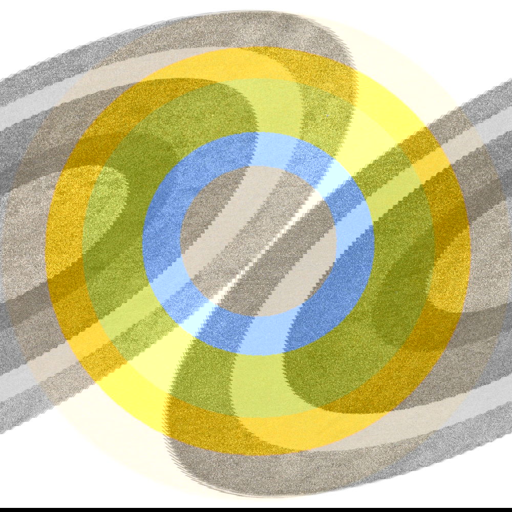 Runder Teppich in mit 4 Farbringen – lebensfroher Teppichcharme mit fein gesäumtem Kettelrand.