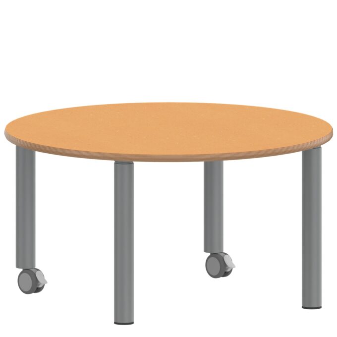 Der Rundtisch ZALOTTI 100 cm mit Linoleum-Belag und fahrbaren Stahlrohrbeinen revolutioniert moderne Arbeits- und Lernräume durch die perfekte Verbindung von natürlicher Eleganz und cleverer Mobilität. Diese außergewöhnliche zargenlose Tischkonstruktion mit 2,5 mm starkem, geräuschdämmendem Linoleum-Belag und robusten, pulverbeschichteten Stahlrohrbeinen schafft völlig neue Dimensionen für flexible Gruppenarbeit und spontane Raumgestaltung. Der kreisrunde Durchmesser von 100 cm mit zwei integrierten Rollen ermöglicht müheloses Verschieben für spontane Raumrekonfiguration, während die perfekte Kreisgeometrie optimale Blickkontakte zwischen allen Teilnehmern ermöglicht und gleichberechtigte Kommunikation ohne dominante Sitzpositionen fördert. Die zargenlose Bauweise bietet ungehinderte Beinfreiheit für alle Nutzer – auch für Rollstuhlfahrer. Mit sieben verfügbaren Höhen von 41 bis 76 cm passt sich dieser „Made in Germany“ Qualitätstisch flexibel an jeden professionellen Bedarf an und schafft durch seine natürliche Linoleum-Oberfläche eine warme, einladende mobile Arbeitsatmosphäre.