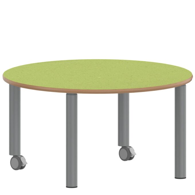 Rundtisch ZALOTTI 100 cm mit Linoleum fahrbar – Mobile Eleganz für dynamische Arbeitsräume