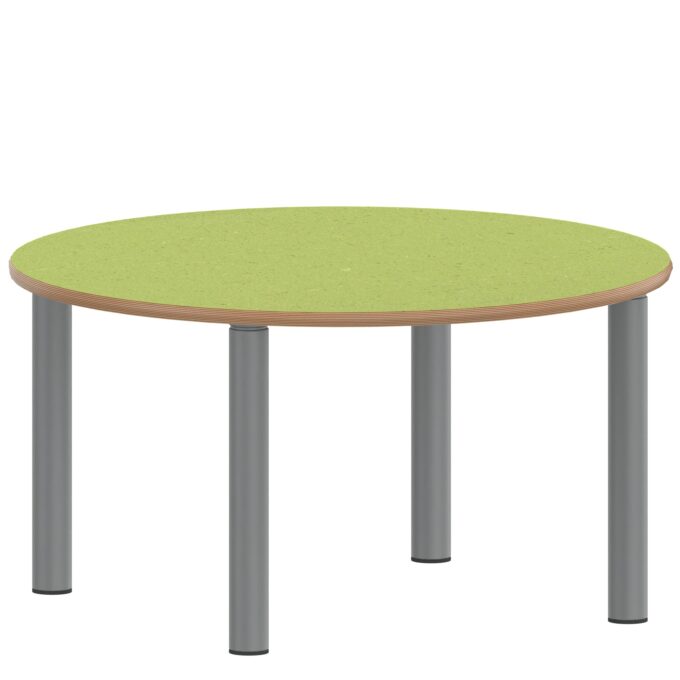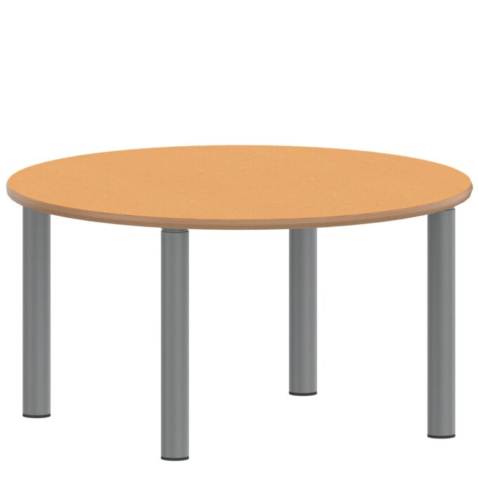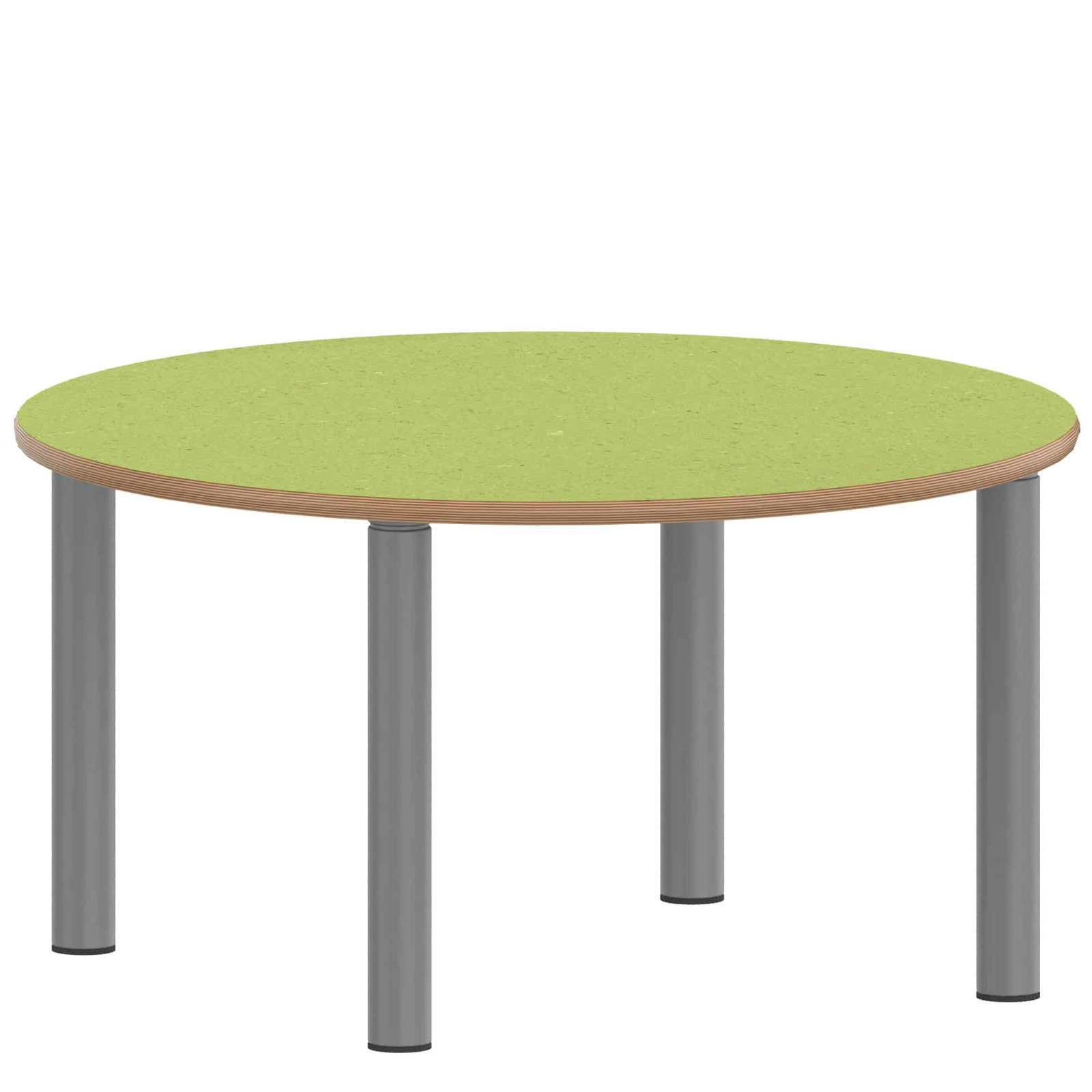 Der Rundtisch ZALOTTI 100 cm mit Linoleum-Belag und Stahlrohrbeinen definiert moderne Krippen- und Kindergartenräume durch seine einzigartige Verbindung von perfekter Geometrie und natürlicher Ausstrahlung neu. Diese außergewöhnliche zargenlose Tischkonstruktion mit 2,5 mm starkem, geräuschdämmendem Linoleum-Belag und robusten, pulverbeschichteten Stahlrohrbeinen schafft die ideale Atmosphäre für harmonische Gruppenarbeit und natürliche Kommunikation. Der kreisrunde Durchmesser von 100 cm ermöglicht optimale Blickkontakte zwischen allen Kindern und fördert gleichberechtigte Gesprächsführung ohne dominante Sitzpositionen. Die zargenlose Bauweise bietet ungehinderte Beinfreiheit für alle Nutzer – auch für Rollstuhlfahrer. Mit acht verfügbaren Höhen von 25 bis 76 cm wächst dieser „Made in Germany“ Qualitätstisch flexibel mit den Kindern mit und schafft durch seine industrielle Ästhetik eine professionelle, moderne Arbeitsatmosphäre für kreatives Lernen, gemeinsame Aktivitäten oder pädagogische Projekte.