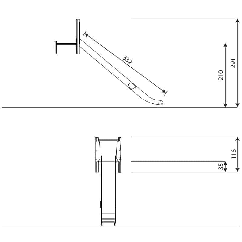 - Die Abdeckungen bestehen aus recycelten HDPE-Platten und sind witterungsbeständig. Rutschen aus Edelstahl mit Seitenwänden aus recycelten HDPE-Platten, beständig gegen atmosphärische Bedingungen.