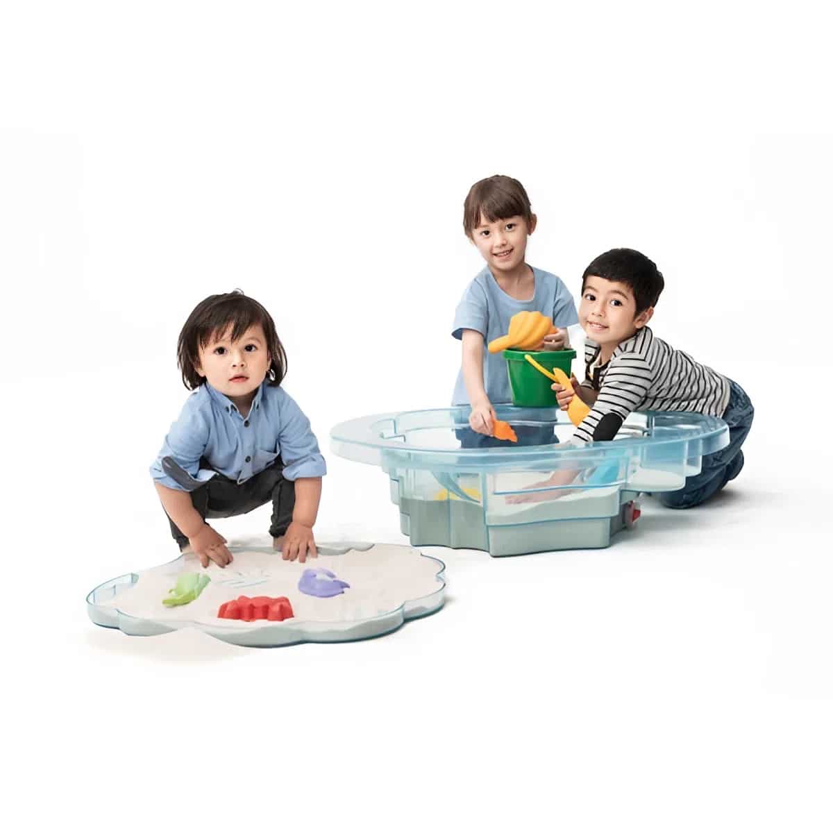- Gemeinschaftliches Spiel: Die muschelförmige Wanne mit abgestuften Tiefen lädt zum gemeinsamen Spiel ein. Kinder lernen, zu teilen, zu kommunizieren und zusammenzuarbeiten.