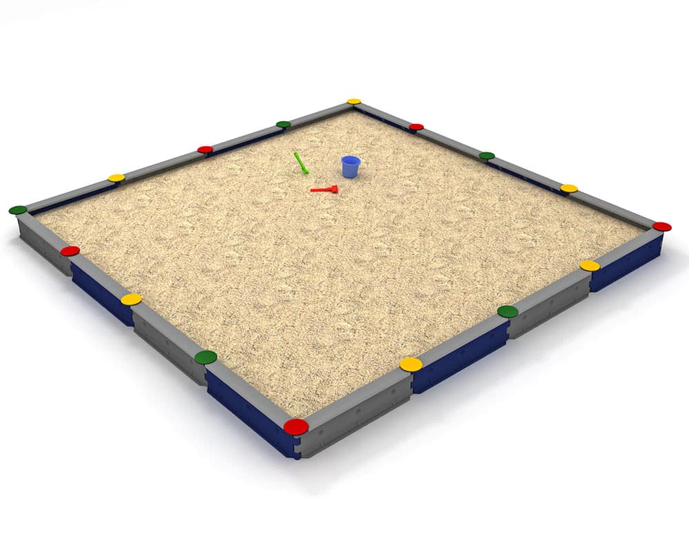 LEDON Sandkasten quadratisch mit 16 Seiten – für Kindergarten- Außenanlagen