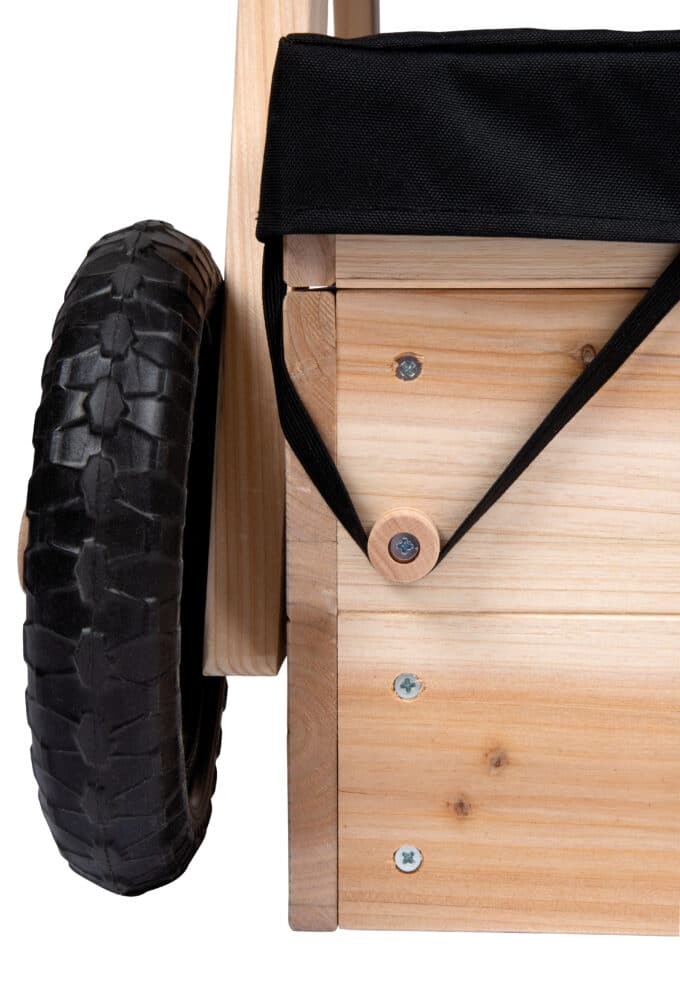 • Material: Witterungsbeständiges, unbehandeltes Massivholz; Metall (Schüssel); Kunststoff (Räder); Oxford-Gewebe (Abdeckung)