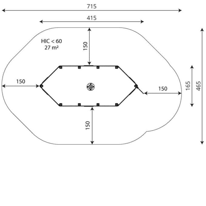 - Verankerung auf ebener Fläche, 80/70/60 cm tief;