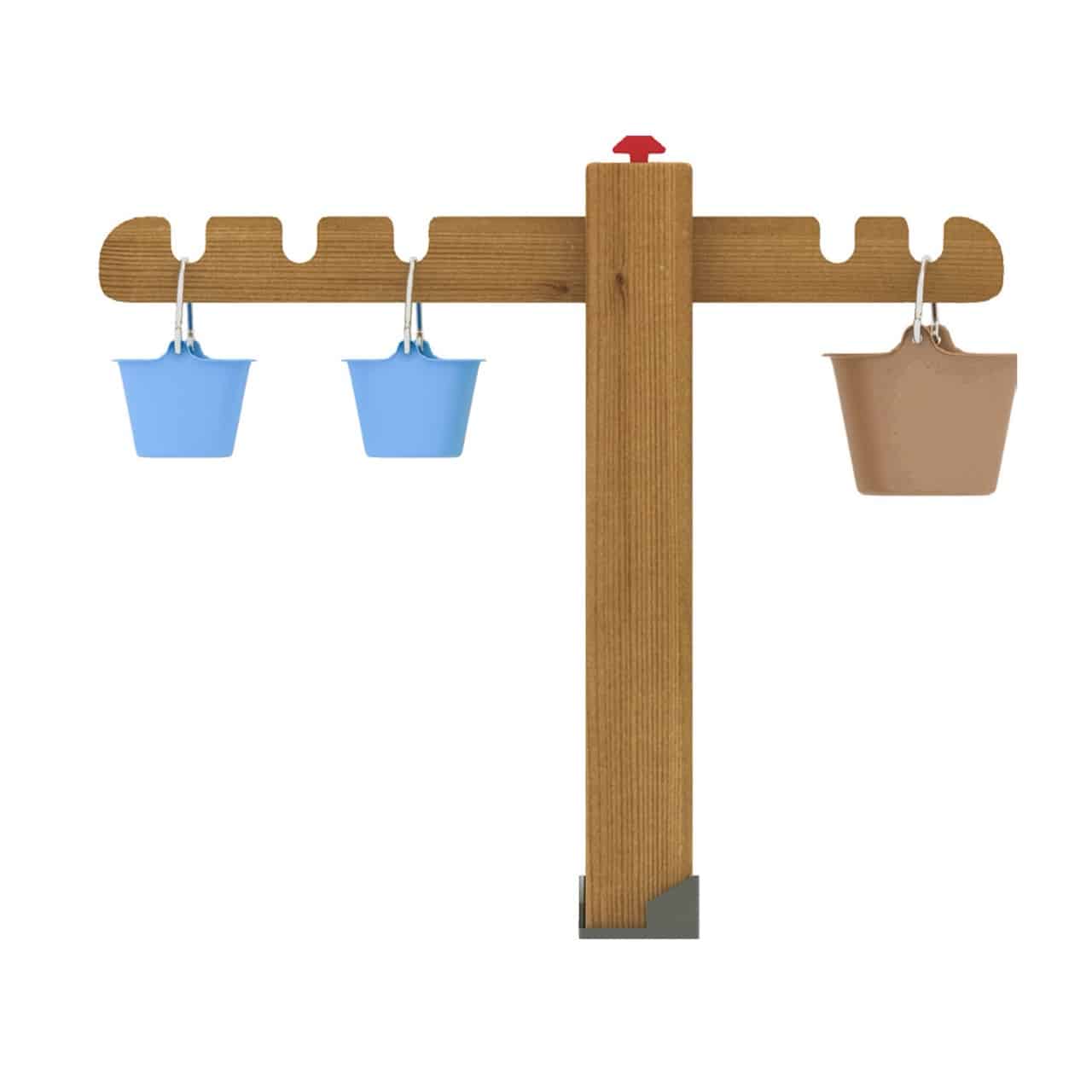 Die Sandspiel-Waage ist mit drei Eimern ausgestattet, die den Spielspaß zusätzlich erhöhen. Kinder können nach Herzenslust Sand in die Eimer füllen und gleichzeitig das Gleichgewicht der Waage testen. Diese interaktive Spielerfahrung fördert nicht nur die motorischen Fähigkeiten, sondern auch das Verständnis für schweremäßiges und geometrisches Spiel – alles auf eine unterhaltsame und ansprechende Weise!