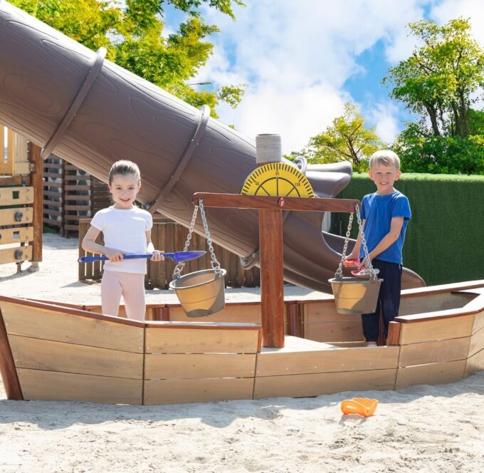 Die Sandspielanlage „Boot” begeistert mit einer Waage und zwei fest verbundenen Eimern, die den Spielspaß zusätzlich erhöhen. Ihre kleinen Kapitäne können Sand transportieren, wiegen und ihrer Fantasie freien Lauf lassen. Ob beim Bau von Sandburgen oder beim Anlegen von Anlegestellen, die Kinder lernen nicht nur spielerisch den Umgang mit Sand, sondern fördern auch ihre motorischen Fähigkeiten.