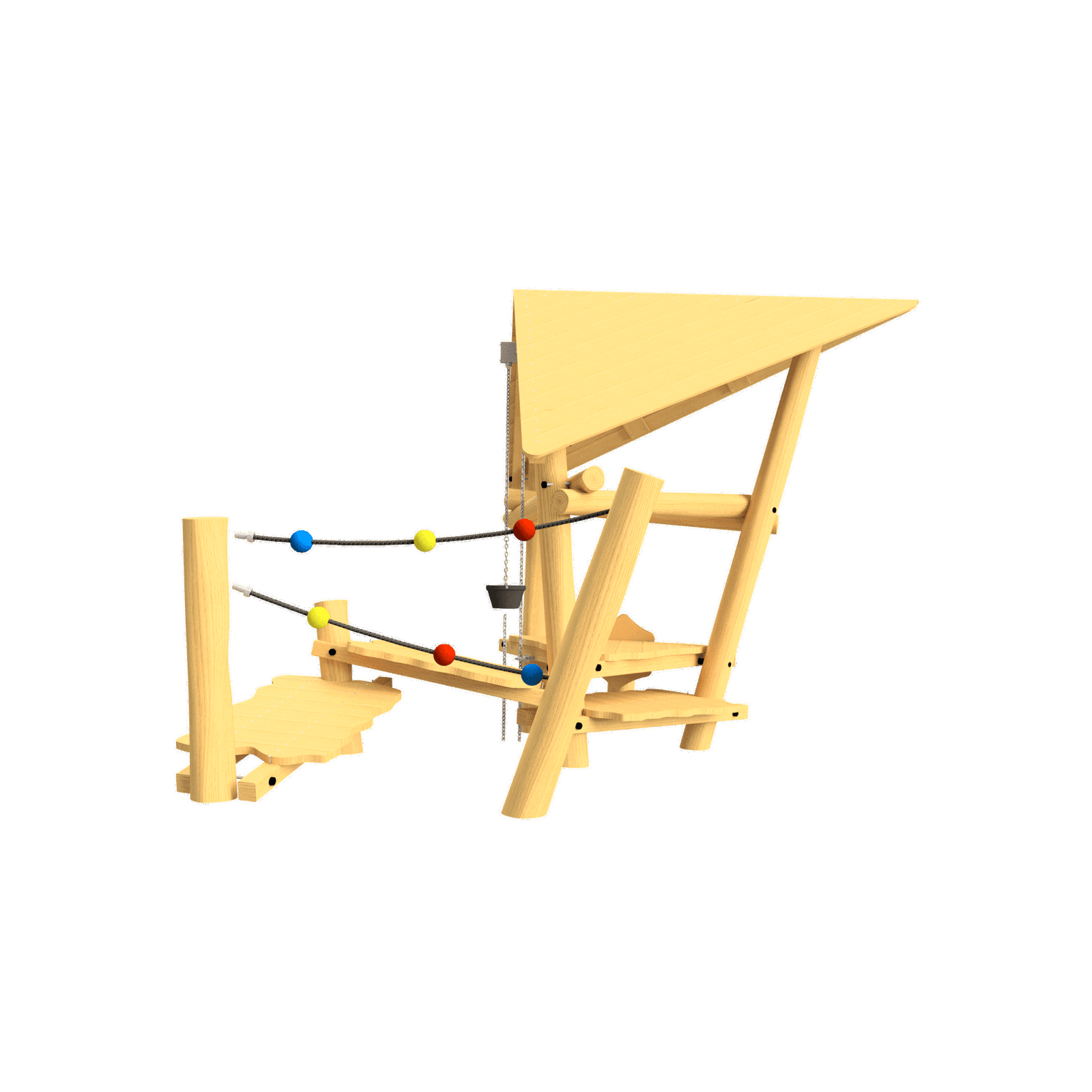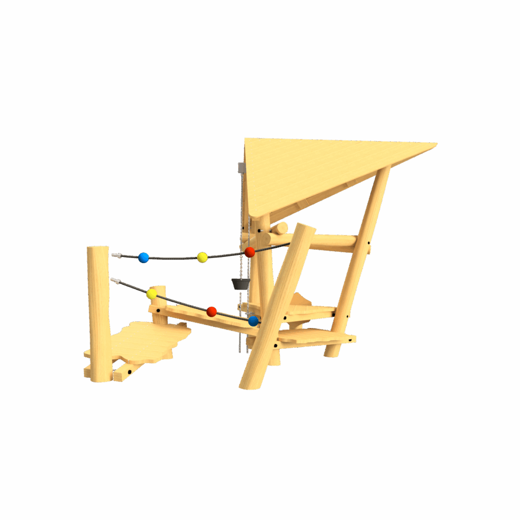 - Material: Hergestellt aus unregelmäßig geformte Robinienholz, FSC-zertifiziert. Diese europäische Hartholzart hat die Beständigkeitsklasse 1 nach NEN-EN 350 und ist splintfrei. Alle Metallteile sind aus Edelstahl. Anschlüsse sind ggf mit einer Kunststoffkappe abgedeckt. Netze und Seile bestehen aus 16 mm starkem, vandalensicherem Herkules-Seil.