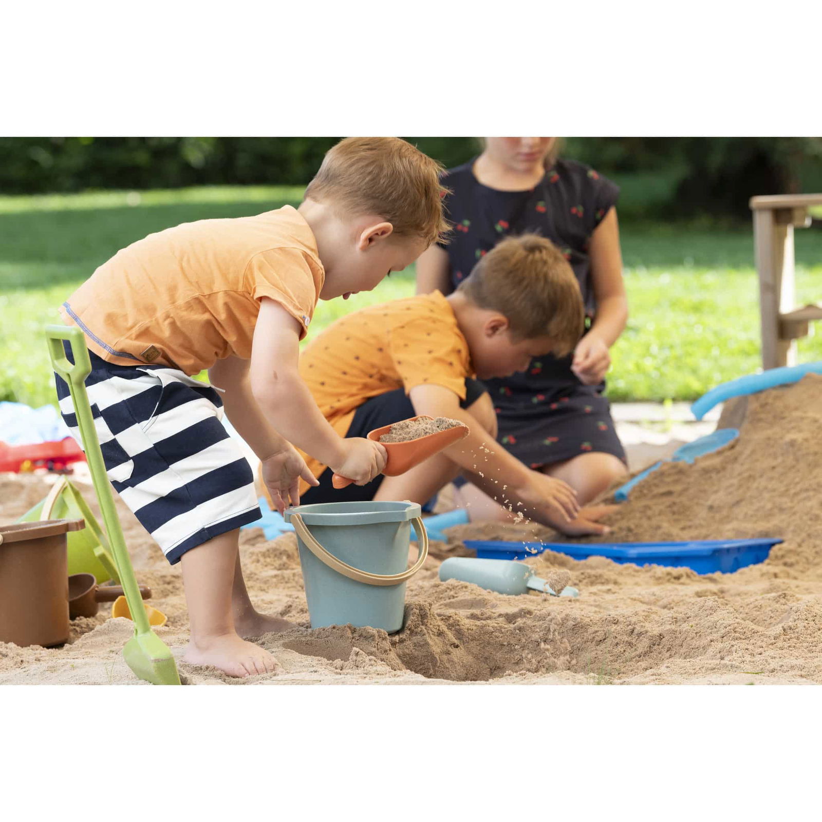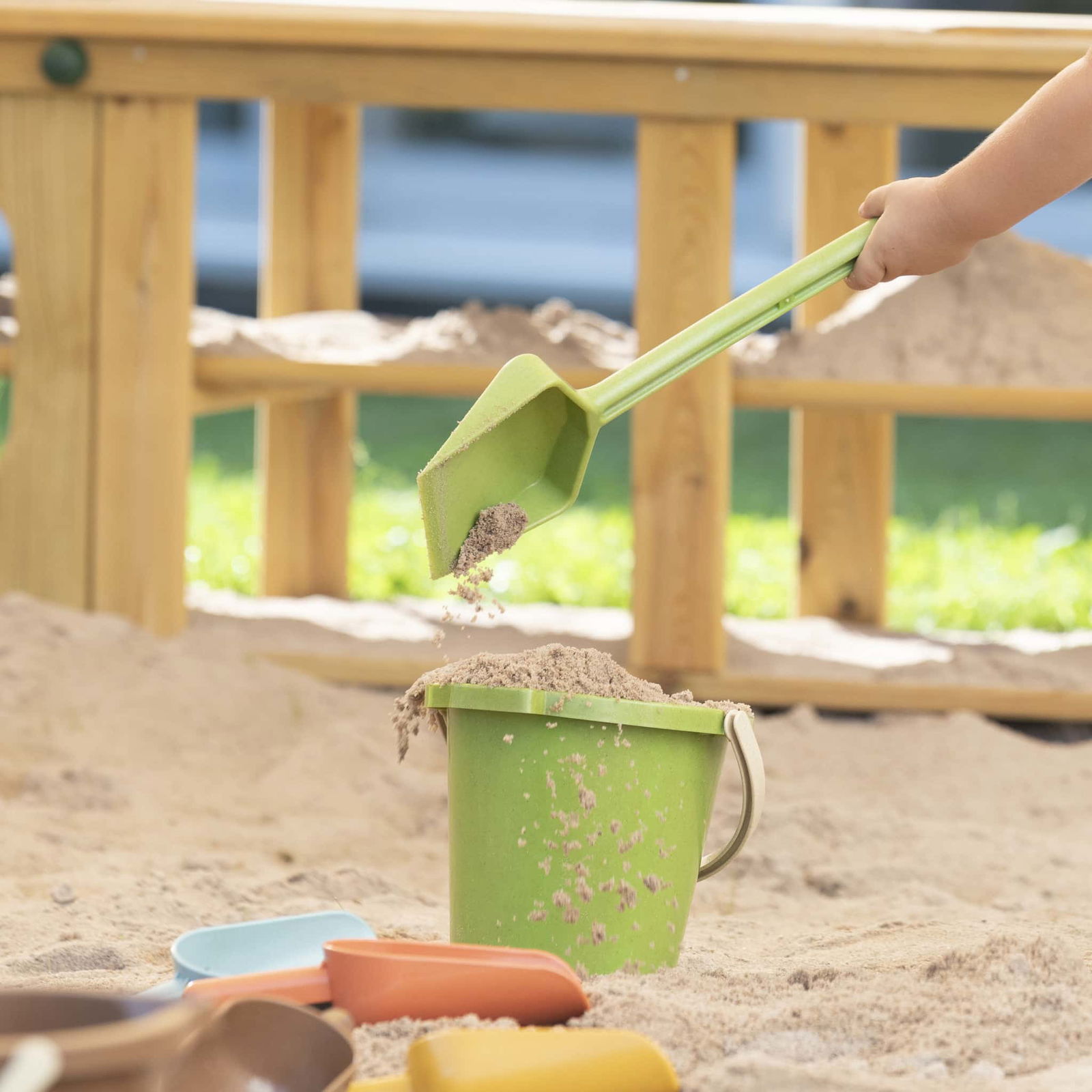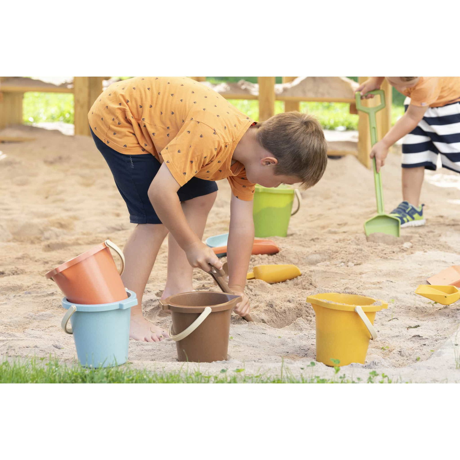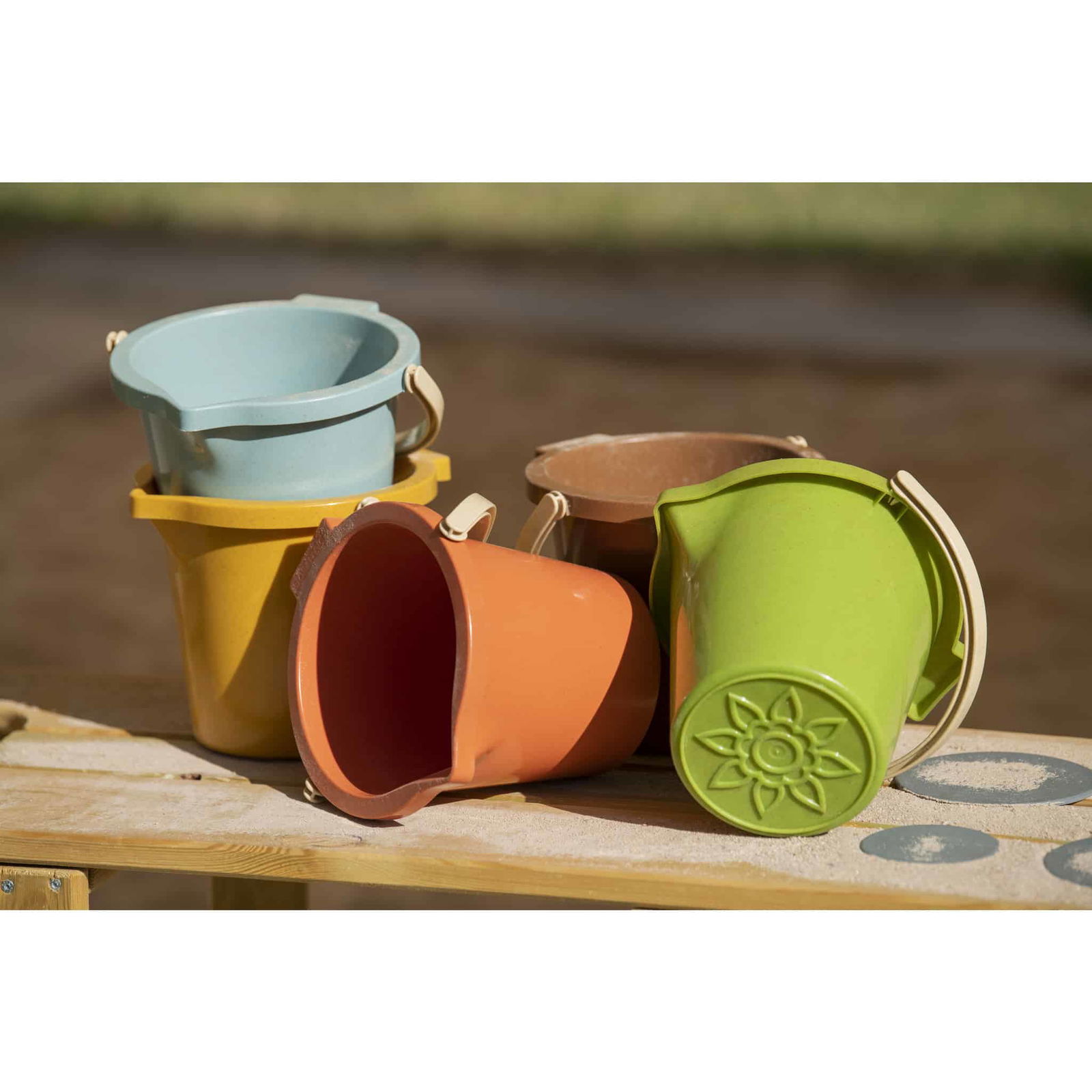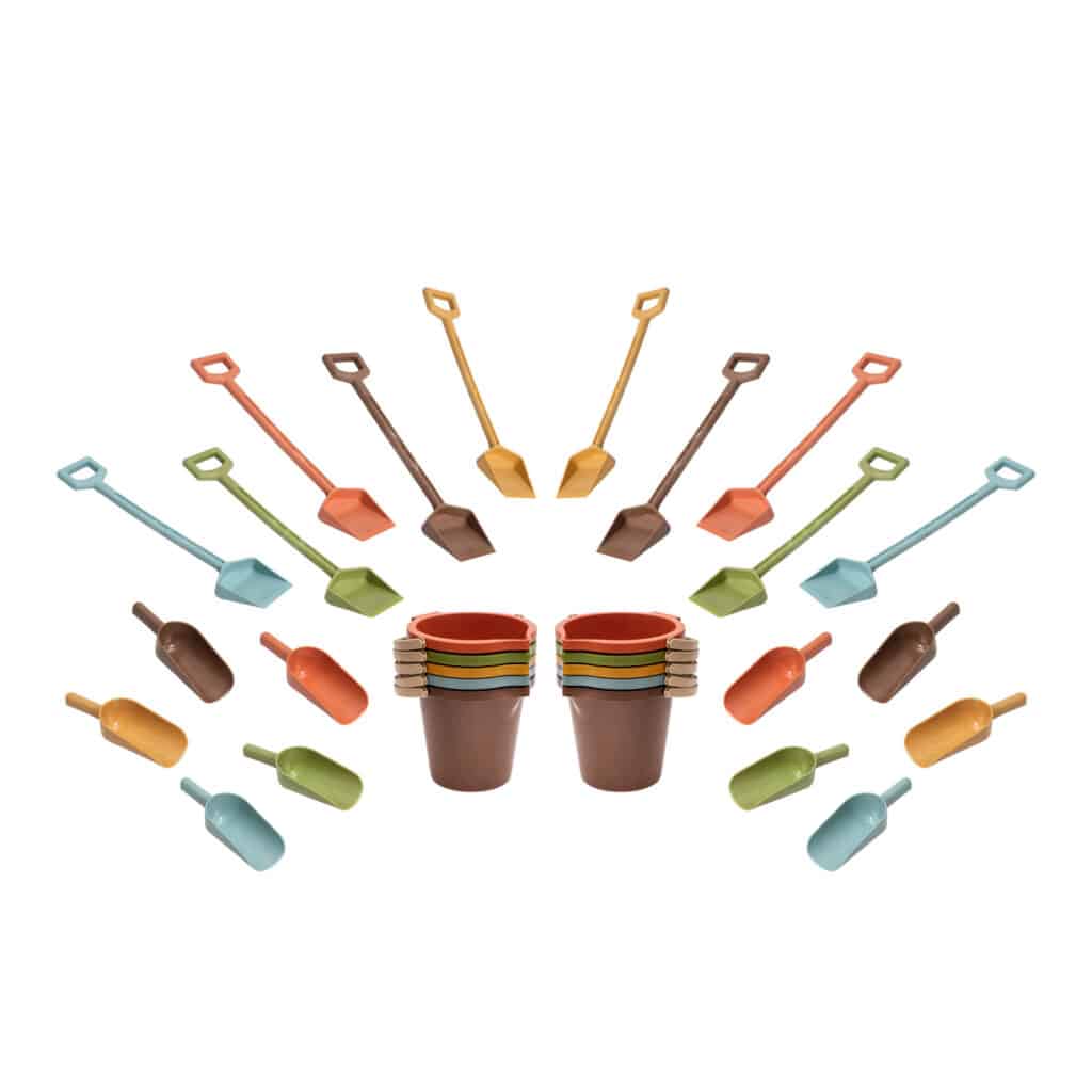 Gefertigt aus Biokunststoffgranulat mit sichtbaren Holzfasern steht dieses Set für einen bewussten Umgang mit Ressourcen. Es ist nicht nur langlebig, sondern auch eine nachhaltige Alternative zu herkömmlichem Kunststoffspielzeug. Kinder können nach Herzenslust Löcher graben, Sandkuchen backen oder ganze Sandburgen erschaffen – und das mit bestem Gewissen.