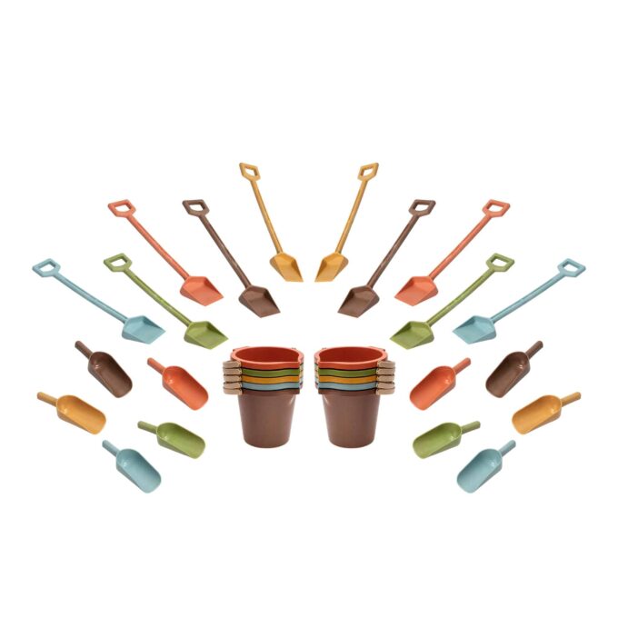 - Lieferumfang: 10 Schaufeln, 10 Spaten, 10 Eimer.