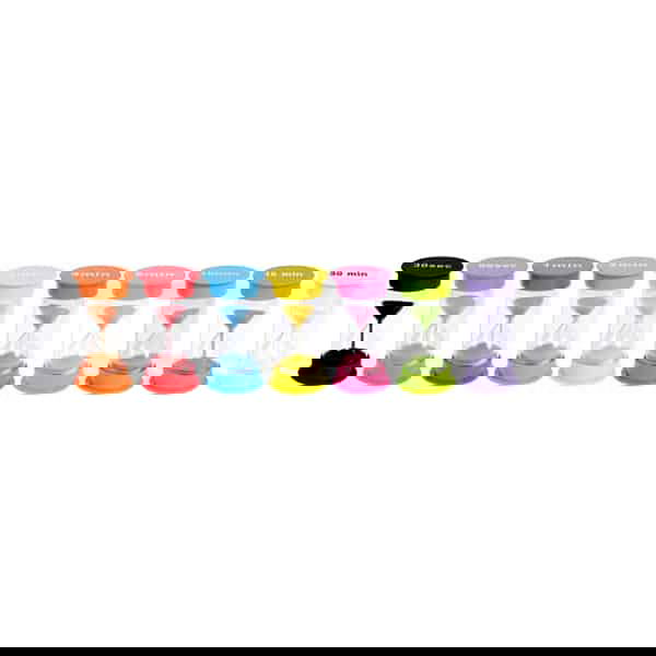 Entdecken Sie das perfekte Zusammenspiel von Ästhetik und Funktionalität mit unseren stilvollen Sanduhren, die nicht nur die Zeit messen, sondern auch das Auge erfreuen. Jede Sanduhr kommt mit einem frischen Design daher und der farblich passende Sand macht sie zum attraktiven Hingucker – ob im Klassenzimmer, Kinderzimmer oder auf dem heimischen Schreibtisch. Sie dienen als inspirierende Lernhilfe, die Kindern hilft, ein Verständnis für Zeitabläufe zu entwickeln, und gleichzeitig jedem Raum eine charmante Note verleihen.